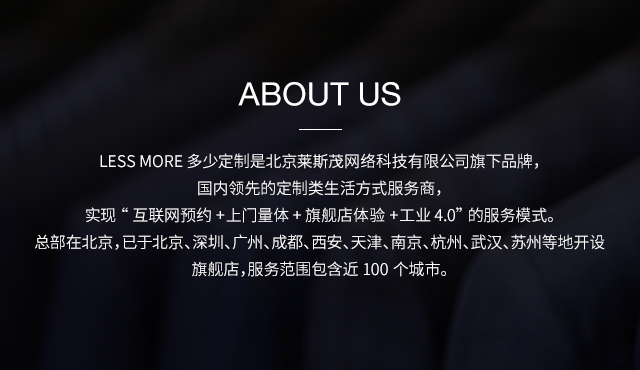 我們的定制產品將在量體結束后最短7個工作日內完成